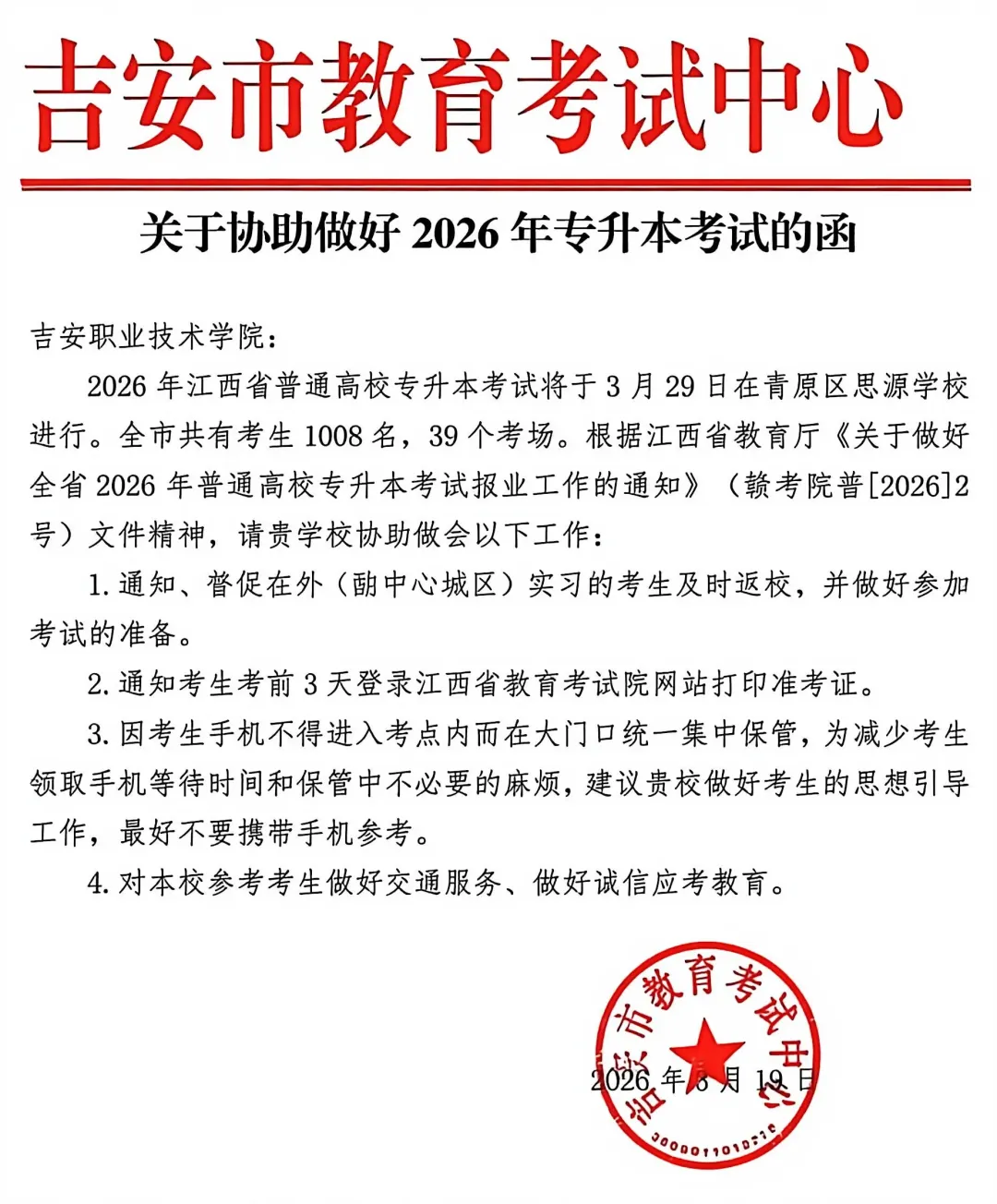 点击查看:【萍乡市考试地点】26年江西专升本萍乡考区温馨提示