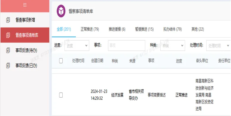 南昌高新区聚焦督查事项日益增多、动态较为复杂等情况,创新搭建督查数字化平台,打造督查督办信息管理系统,实现督查全覆盖、过程全留痕、流程全闭环,进一步提升督查督办工作实效性、精准性、科学性、规范化水平。