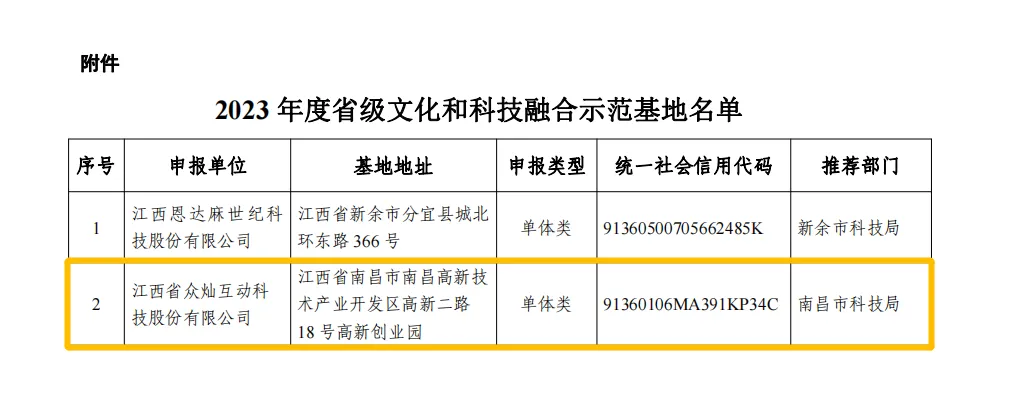 近日,江西省科学技术厅、中共江西省委宣传部、中共江西省委网信办、江西省文化和旅游厅、江西省广播电视局联合发布通知,公布了2023年度省级文化和科技融合示范基地名单。