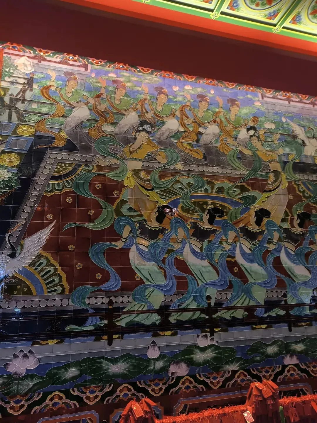 五楼是滕王阁最好的观景层,回廊四绕,视野开阔。凭栏远眺,赣江浩渺,西山隐约,八一大桥横跨两岸。江面上有游轮缓缓驶过,远处的摩天轮在暮色中慢慢转着。
