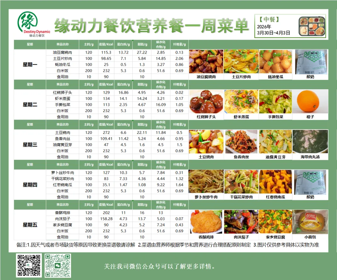南昌县雄溪路小学3月30日-4月3日营养食谱来啦!