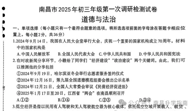 2025年南昌初三一模刚刚结束,小编持续带来了全科的真题+答案,赶紧来给孩子对答案~