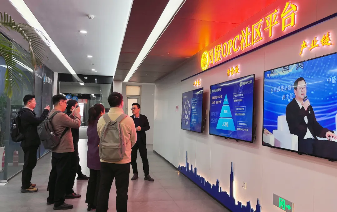 交流过程中,双方聚焦同橙OPC社区整体运营架构、建设推进机制、政企协同服务体系及可持续发展模式等方面,与同橙科创相关负责人进行了座谈交流,深入了解同橙OPC社区在人才链、资金链、产业链等领域的实践经验。从“线上虚拟平台+线下实体空间”融合运营模式,到“知识库+工具集+协作空间”三大中台的全生命周期服务体系;从南京同橙OPC社区孵化政务AI、文创IP等优质项目的实战成果,到拟态智能体平台为创业者提供“数字员工”矩阵的技术赋能——同橙OPC社区以“3个月快速落地”的标准化模型,为区域构建AI创新基础设施提供了可复制的“同橙方案”。