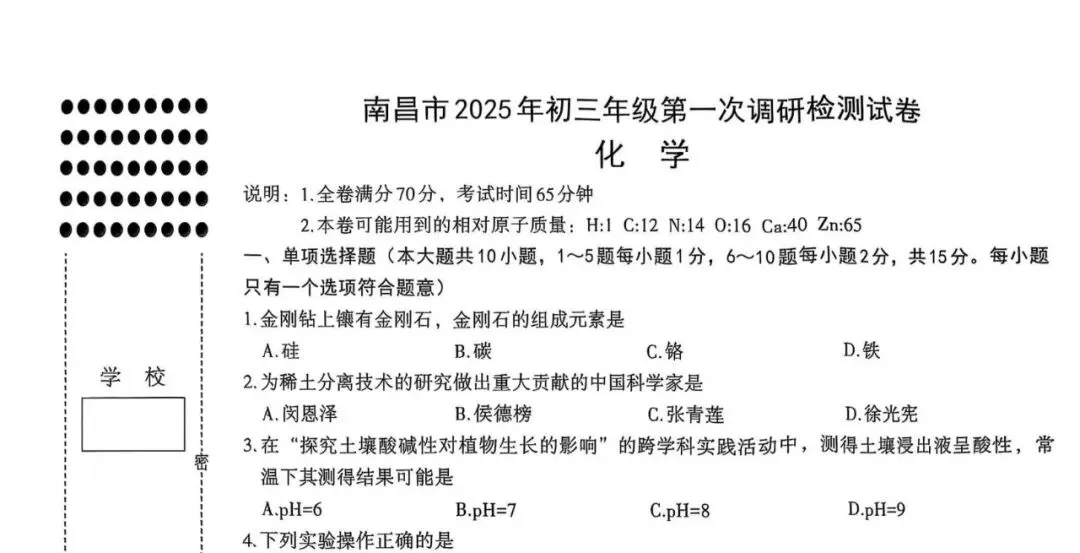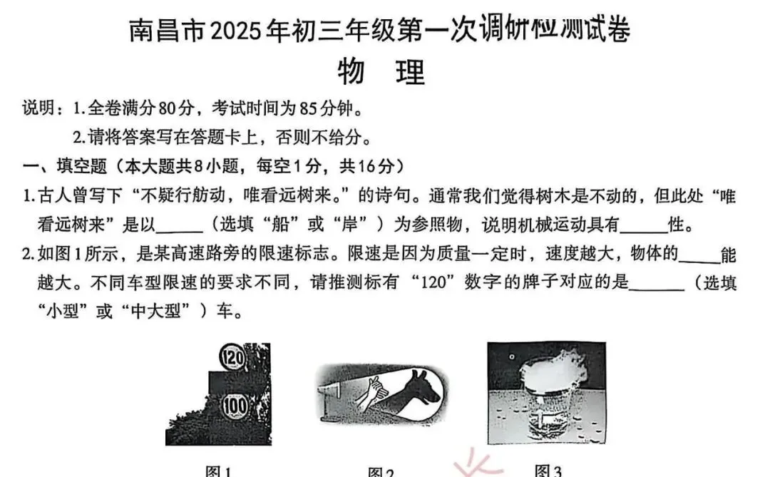 2025年南昌初三一模第二天,小编持续带来了此次一模已考科目的真题+答案,赶紧收藏好来(每科考后第一时间更新,家长可先收藏,全部科目考完后再给孩子对答案)~