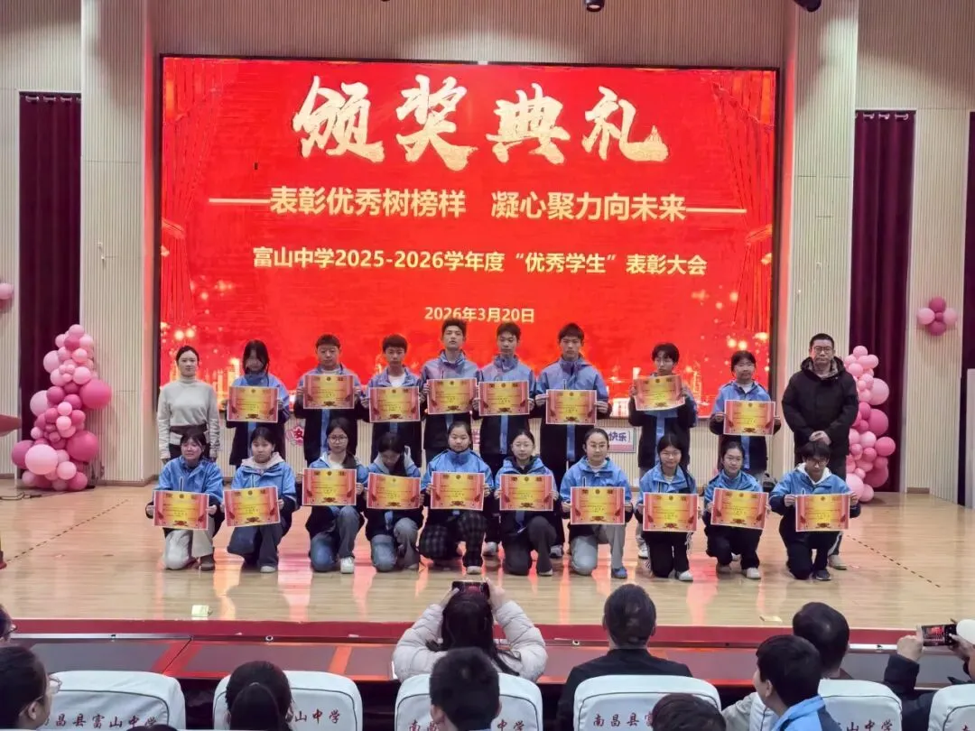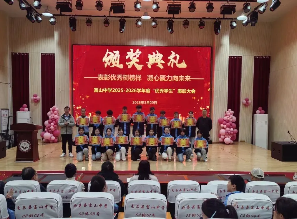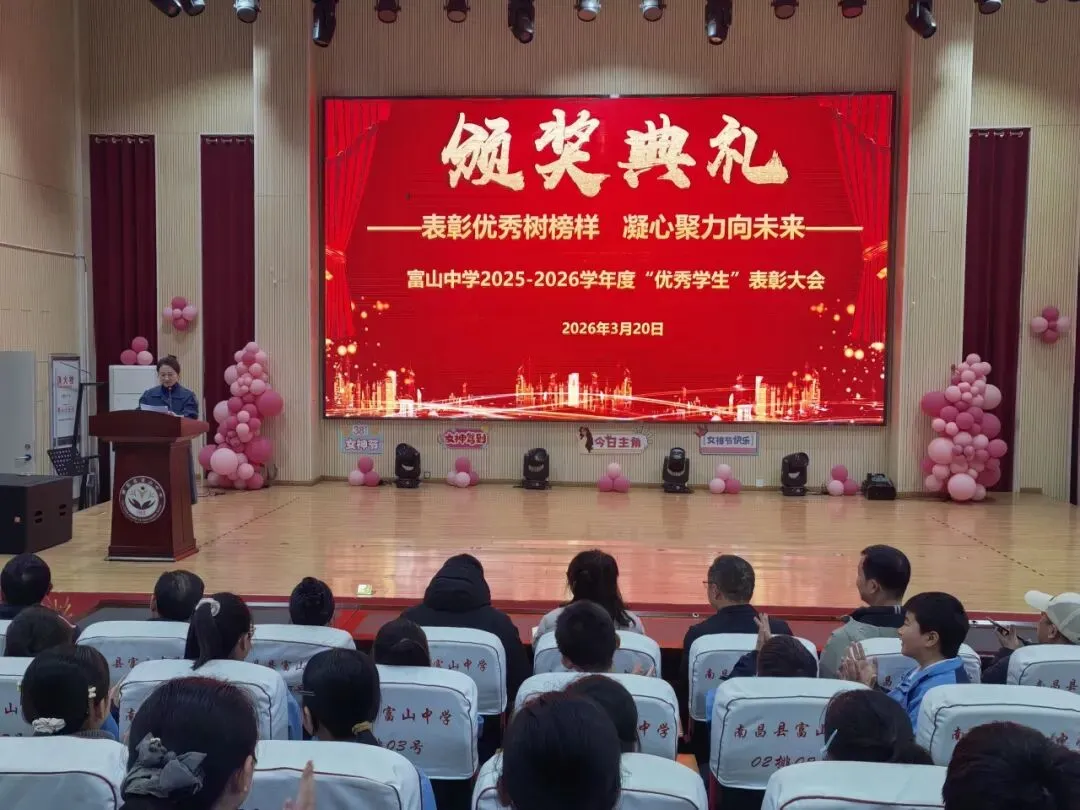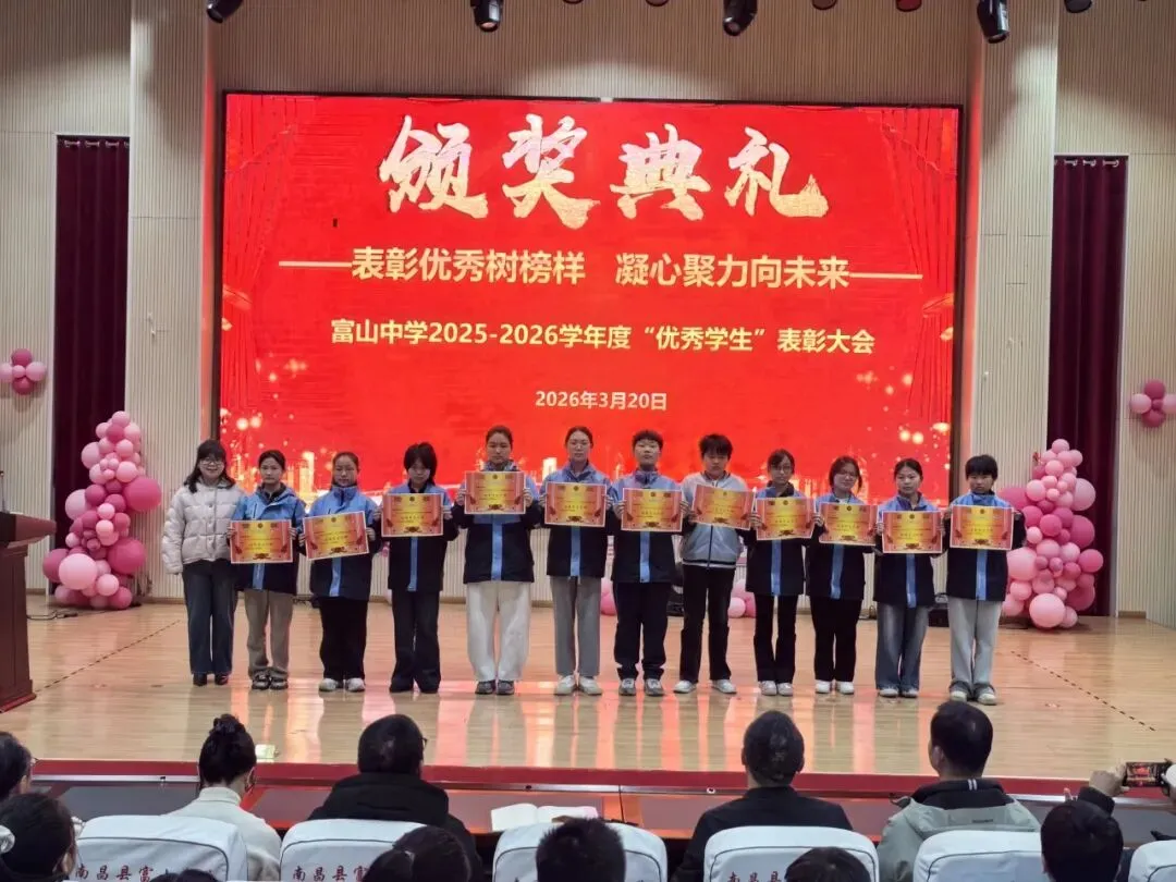 春山可望,逐光而行。为表彰先进,树立榜样,进一步激发全体学生的学习热情,3月20日,南昌县富山中学隆重举行了2025-2026学年度上学期优秀学生颁奖仪式。
