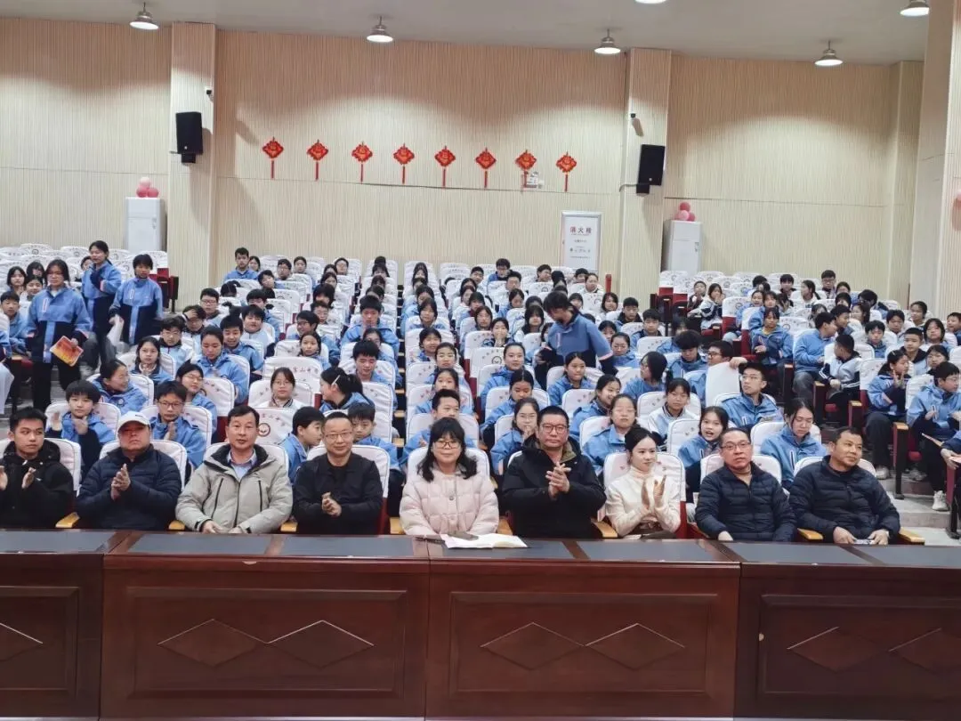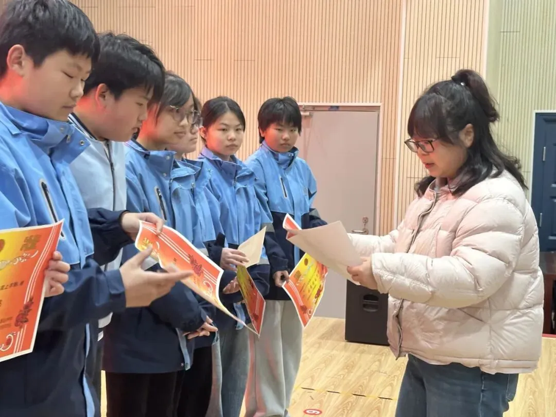 副校长熊春文、副校级干部戴廷贵为七、八年级“进步之星”颁奖。