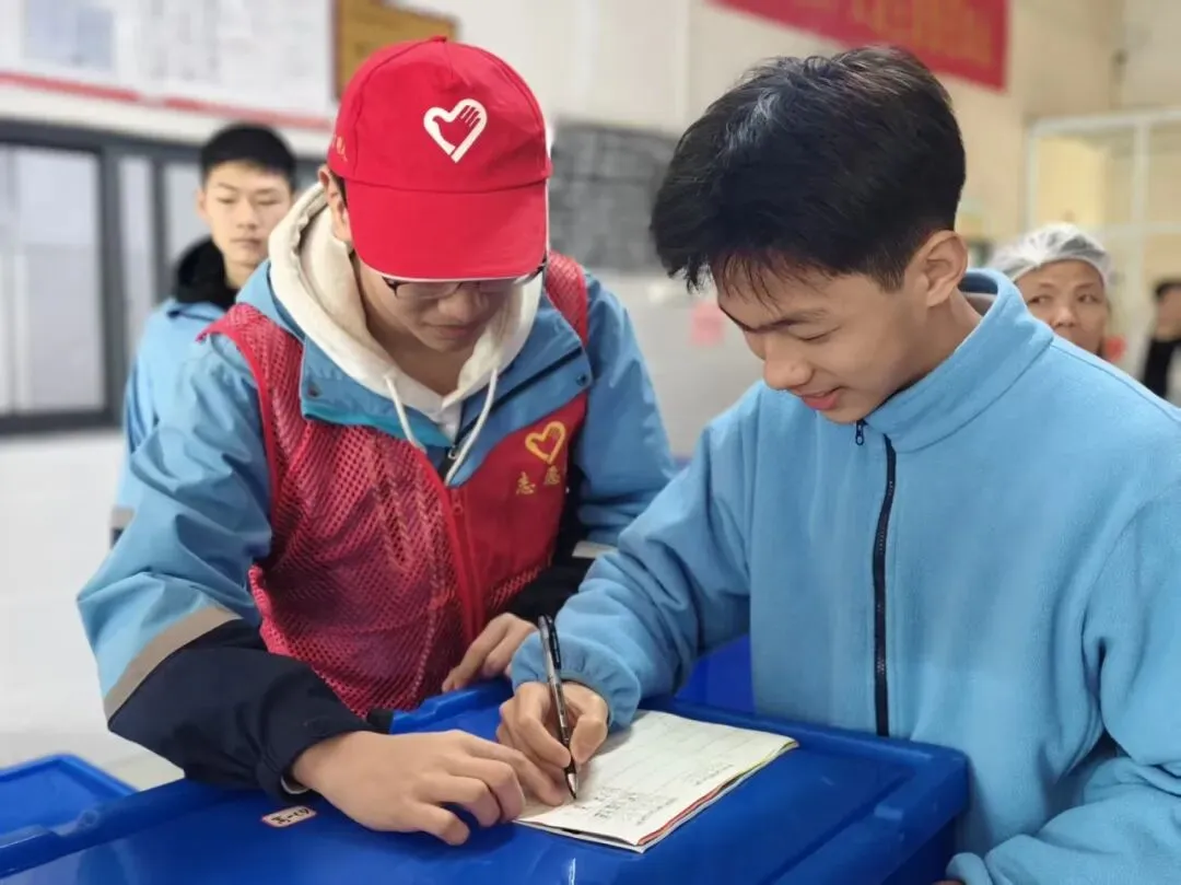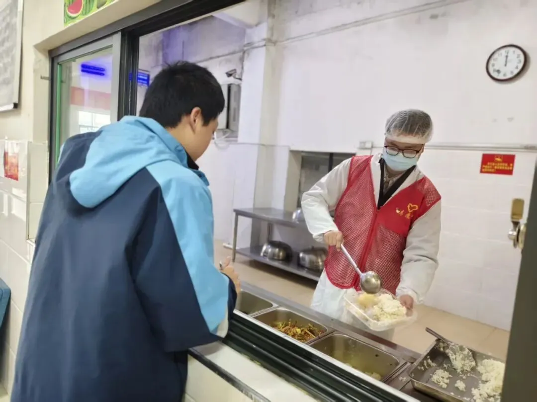 党员志愿者与学生志愿者驻守食堂一线,协同开展秩序维护、文明劝导、爱心帮扶三项行动,筑牢校园文明餐桌防线。志愿者引导同学有序排队,及时劝导插队、喧哗、乱扔餐盒等不文明行为,协助疏导就餐人流。在餐桌张贴“节约粮食”“文明用餐”提示贴,提醒大家按需取餐、杜绝浪费,主动清理桌面残食。同时为行动不便的同学提供取餐、搬运餐盒帮扶,耐心解答菜品咨询,用细致服务传递温暖,让文明用餐成为校园风尚。
