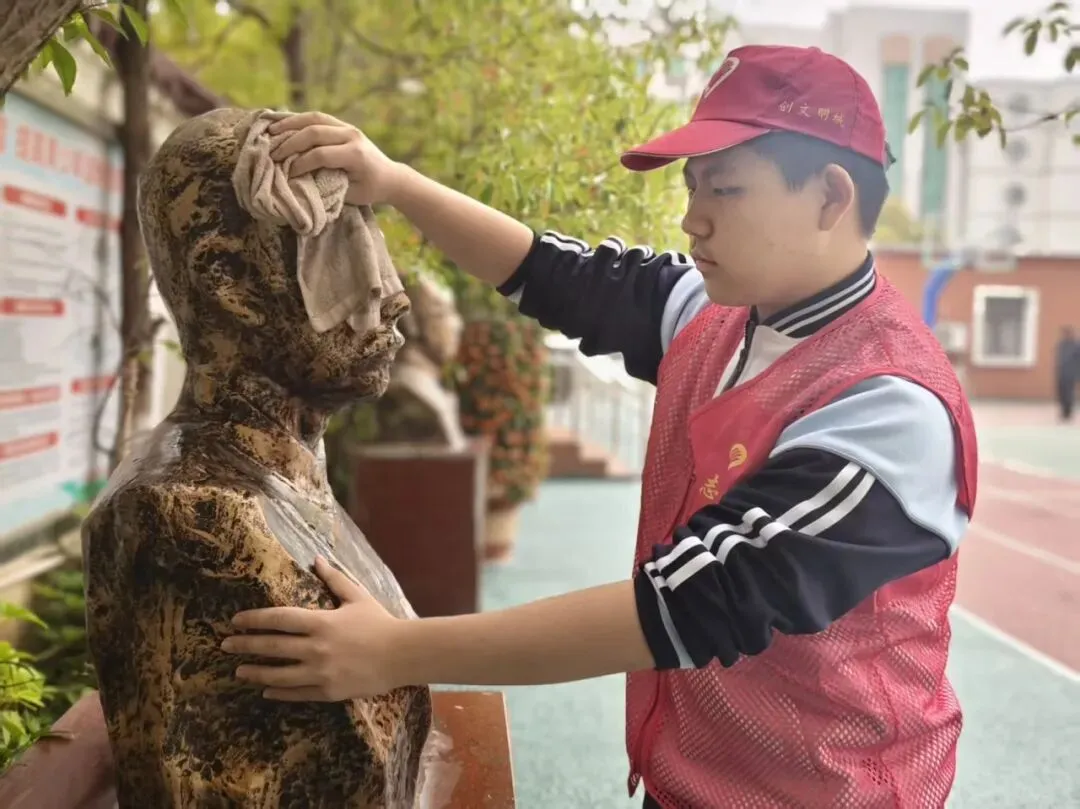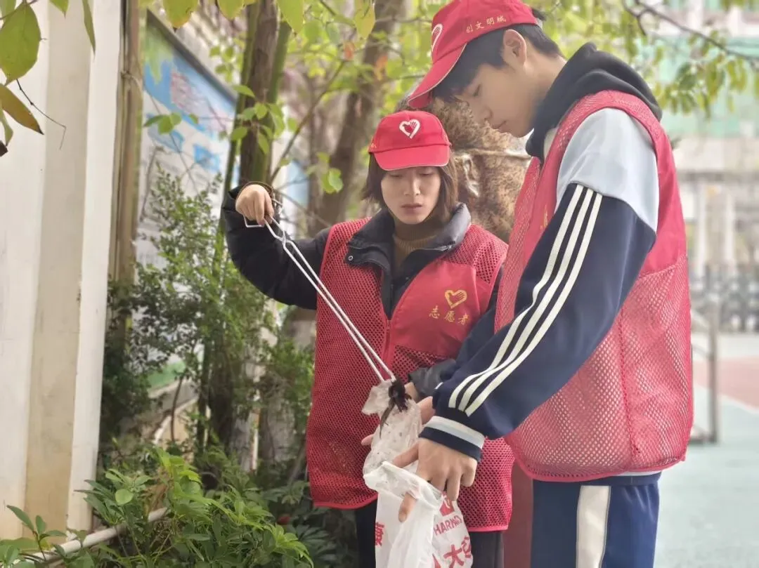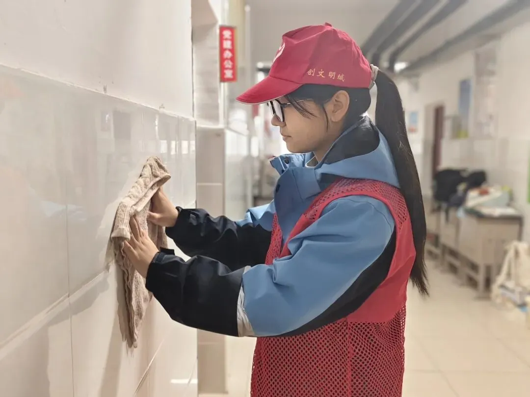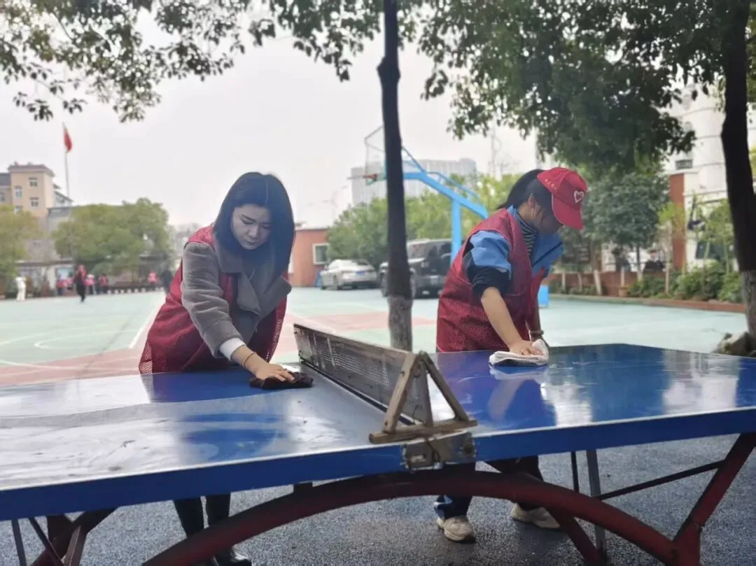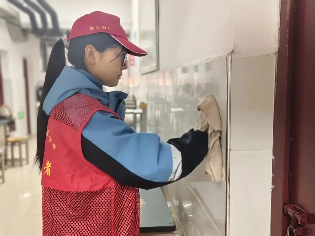 以党建带团建,组织党员与学生志愿者分组行动,开展“校园深度清洁”专项行动。志愿者们对教学楼走廊、楼梯扶手、操场健身器材、食堂外围墙面进行全面清洁,重点擦拭污渍、清理卫生死角、养护公共设施。大家分工协作、不怕脏累,以实际行动美化校园环境,践行劳动精神,共同打造整洁有序、温馨舒适的学习生活空间。