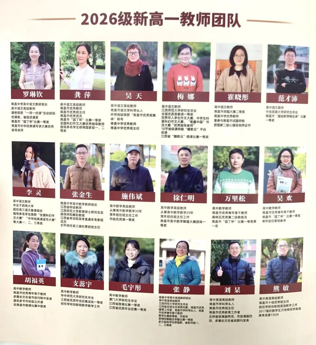 2026级新高一教师团队由原南昌三中高三优秀教师、全国遴选名师,全市选调的优秀教师和部属优秀公费师范生高标准组建。90%教师拥有中高级职称,拥有硕士研究生及以上学历的教师超过三成。