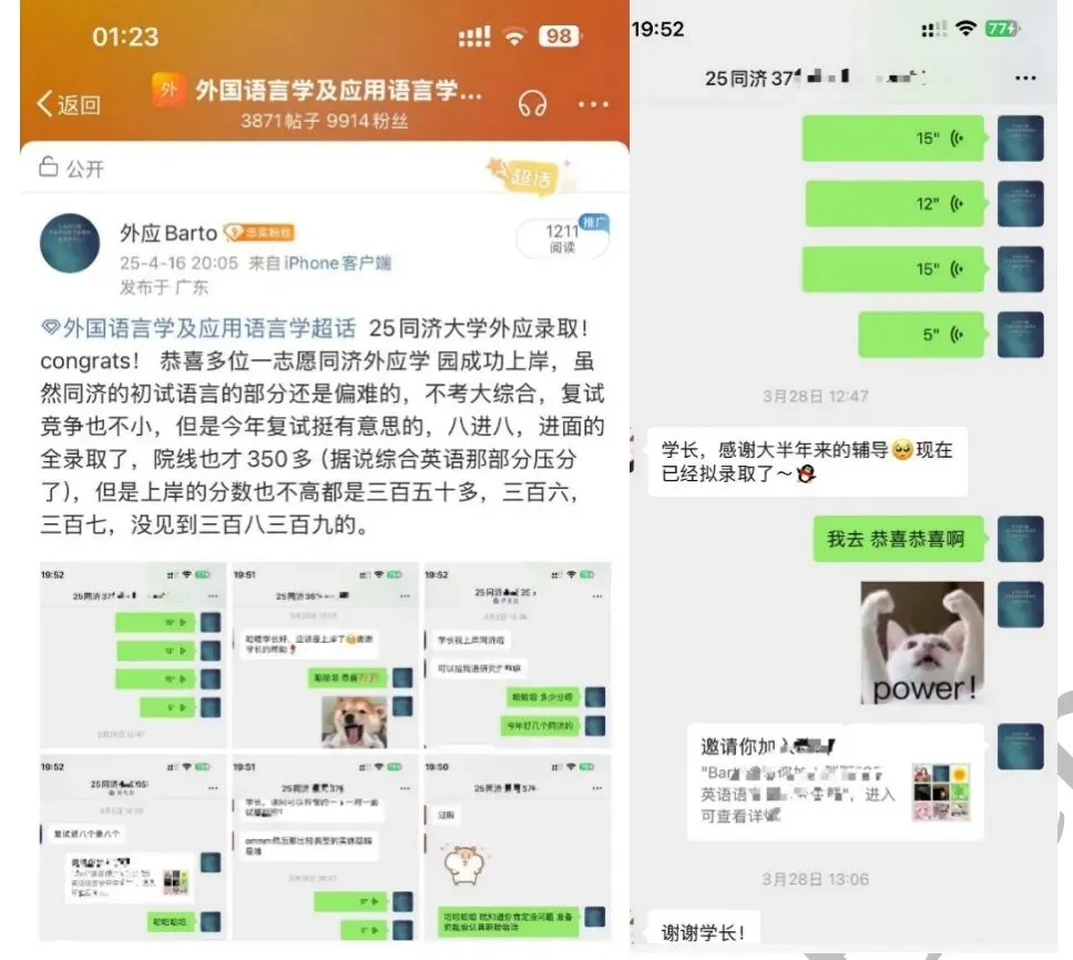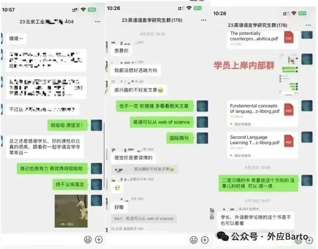 限于篇幅,暂不细数和展示,以下仅展示部分学员情况,其他详情可关注微博/小红书/微信公众号:外应Barto报课详情请咨询外应Barto的个人QQ:1256607997外国语言学及应用语言学、英语语言文学、外国语言文学等方向的备考聚集地等你加入!