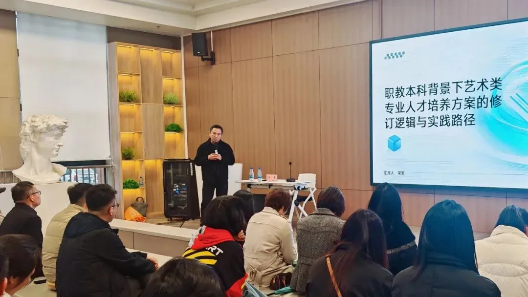 针对修订建议,宋军提出要深入企业,把企业需求转化为课程,紧跟产业变化趋势,让课程随产业动态进行调整,确保产业需求融入课程设计。讲座最后,宋军教授以产业适配性、课程冗余度、方案前瞻性三大问题作为修订成效检验标准,强调修订的终极意义是让学生既站稳岗位,又能领跑行业。此次讲座兼具理论高度与实操性,为艺术设计类专业人才培养方案适配职教本科建设、培养高端技能创新复合型人才提供了重要思路。