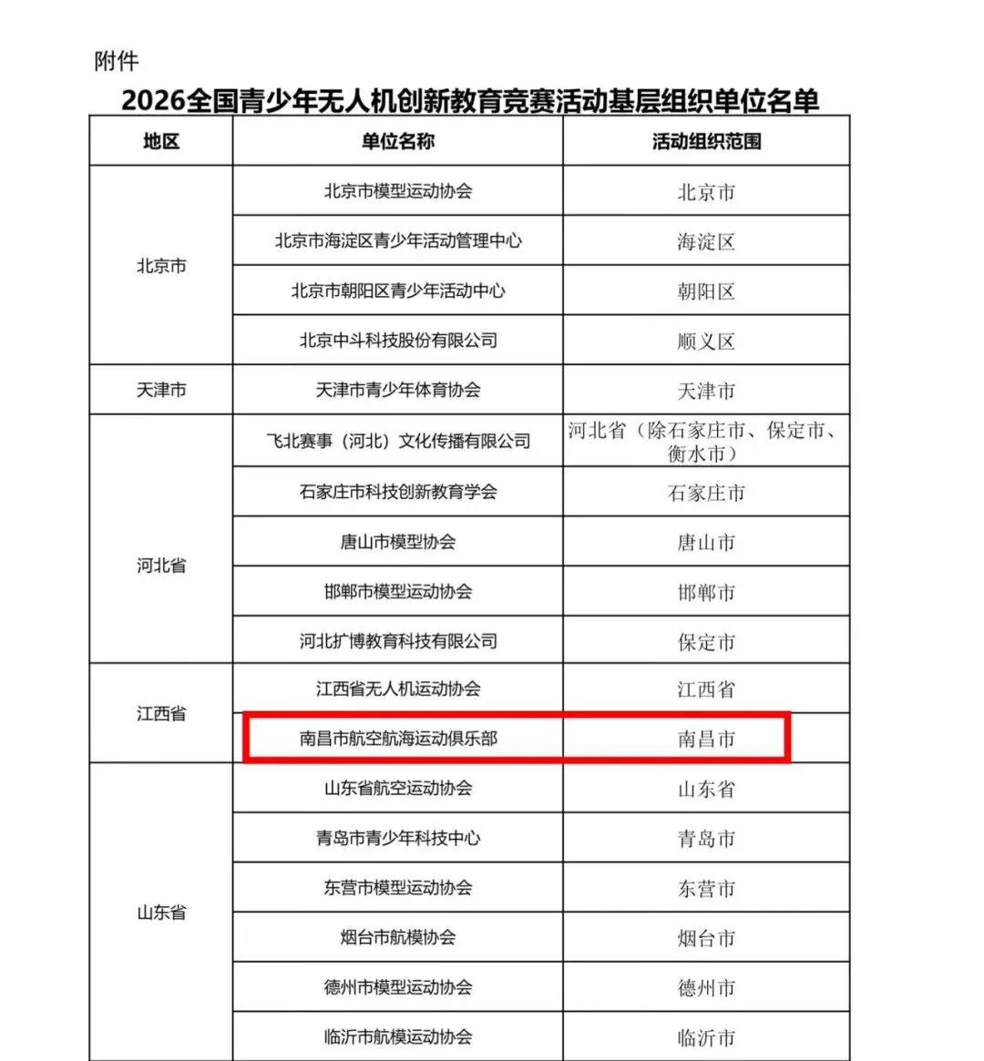 2026年全国青少年无人机创新教育竞赛活动基层组织单位名单