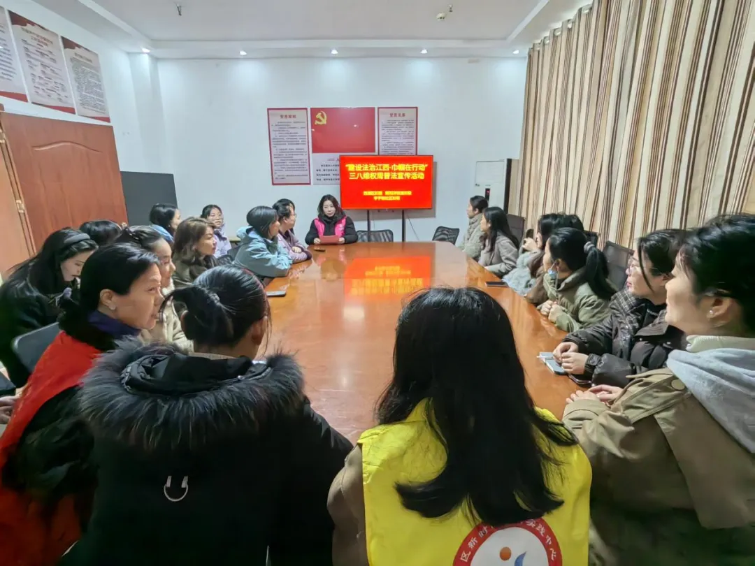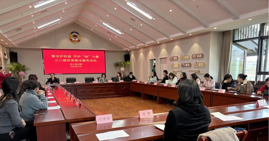 安义县妇联紧扣“普法护权益,守护‘她’力量”主题,联合县人民法院组织举办“三八”妇女维权周法治宣讲座谈会,将专业法律服务精准送到新经济组织、新社会组织、新就业群体的“三新”领域妇女群众身边。