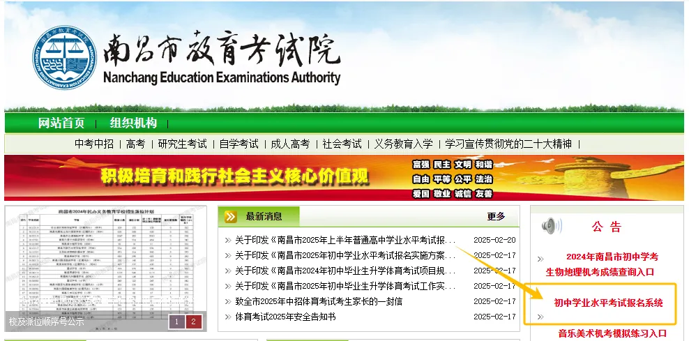 进入南昌市教育考试院网站(http://www.nceea.cn/),点击“初中学业水平考试报名系统”或直接登录网址http://zk.nceea.cn/web/html/login.html