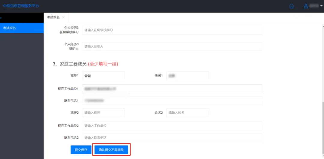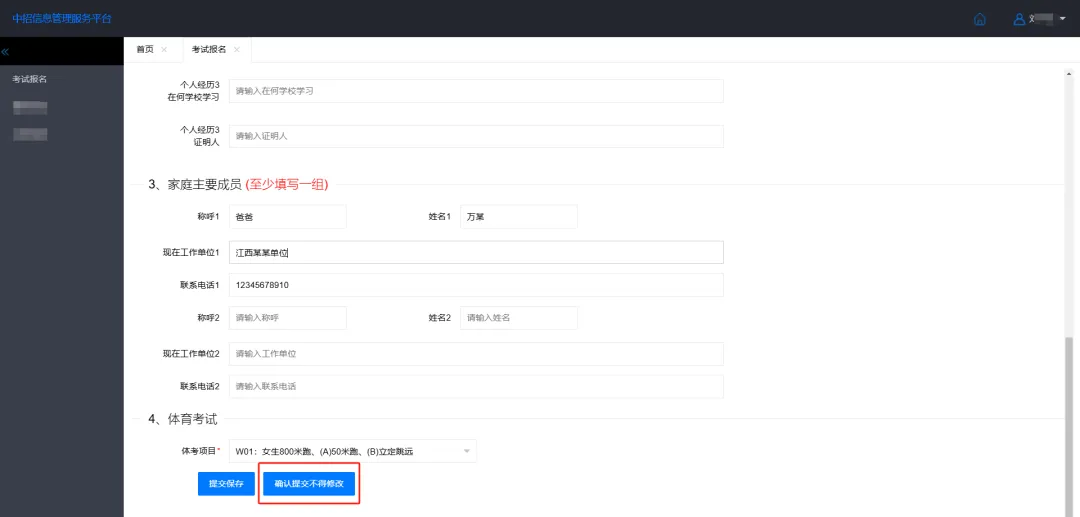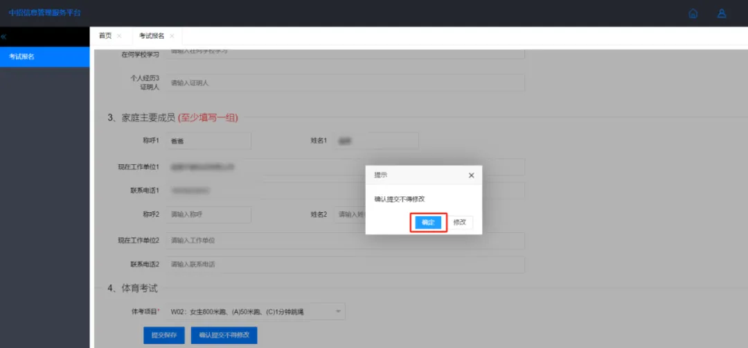 确保信息填写无误后,点击“确认提交不再修改”,完成提交。