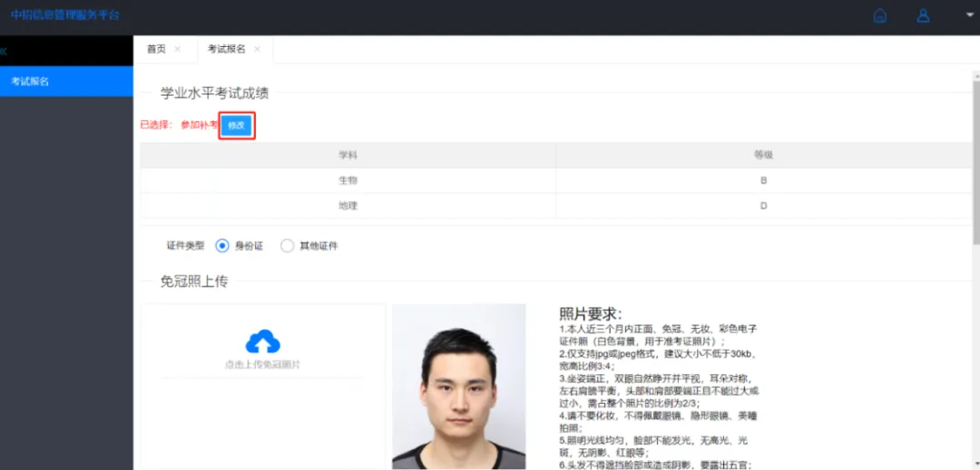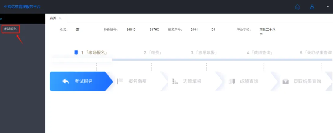 登录后,点击左侧【考试报名】模块,进入报名流程。