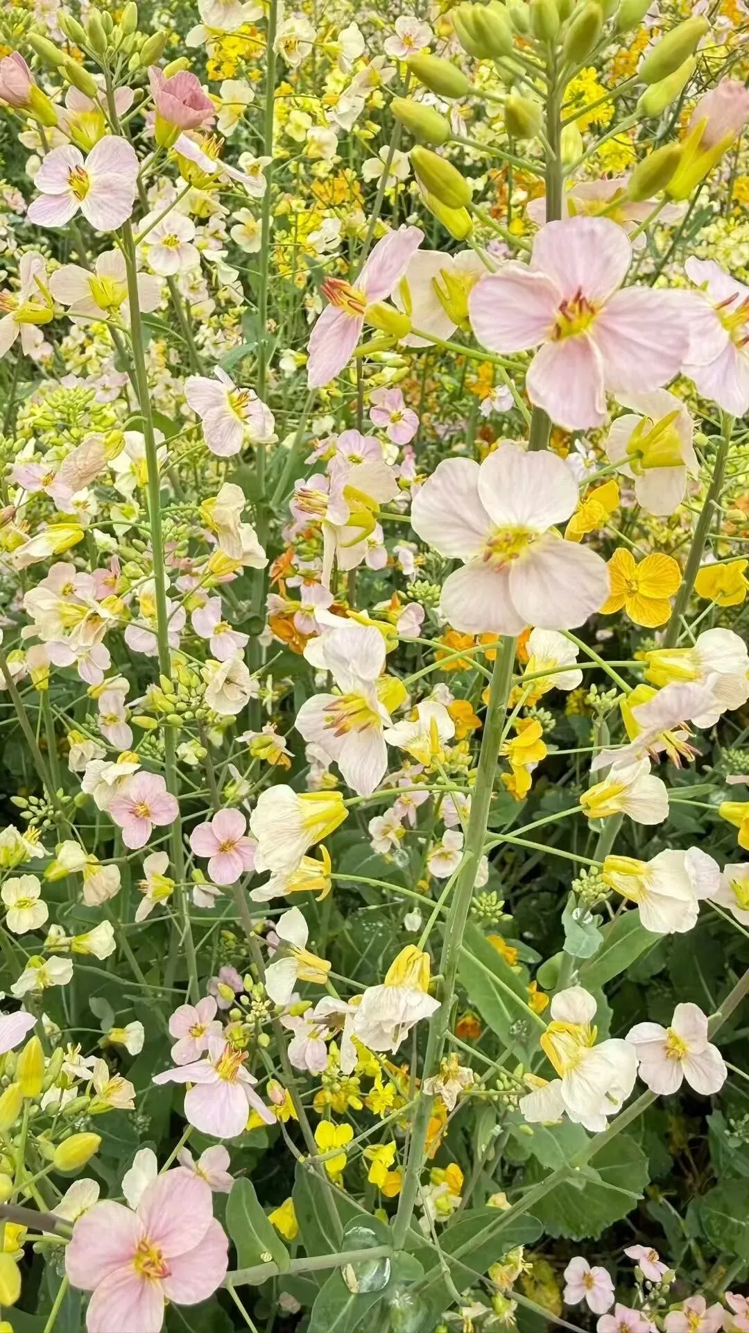 穿过停车场稀疏的车辆,绕过几丛尚在抽芽的灌木,一片土地便以近乎“僭越”的姿态撞入眼帘——那不是惯常所见、整齐划一的金黄,而是一块被打翻的、流淌着的调色盘。这里种植的,是传闻中的彩色油菜花。