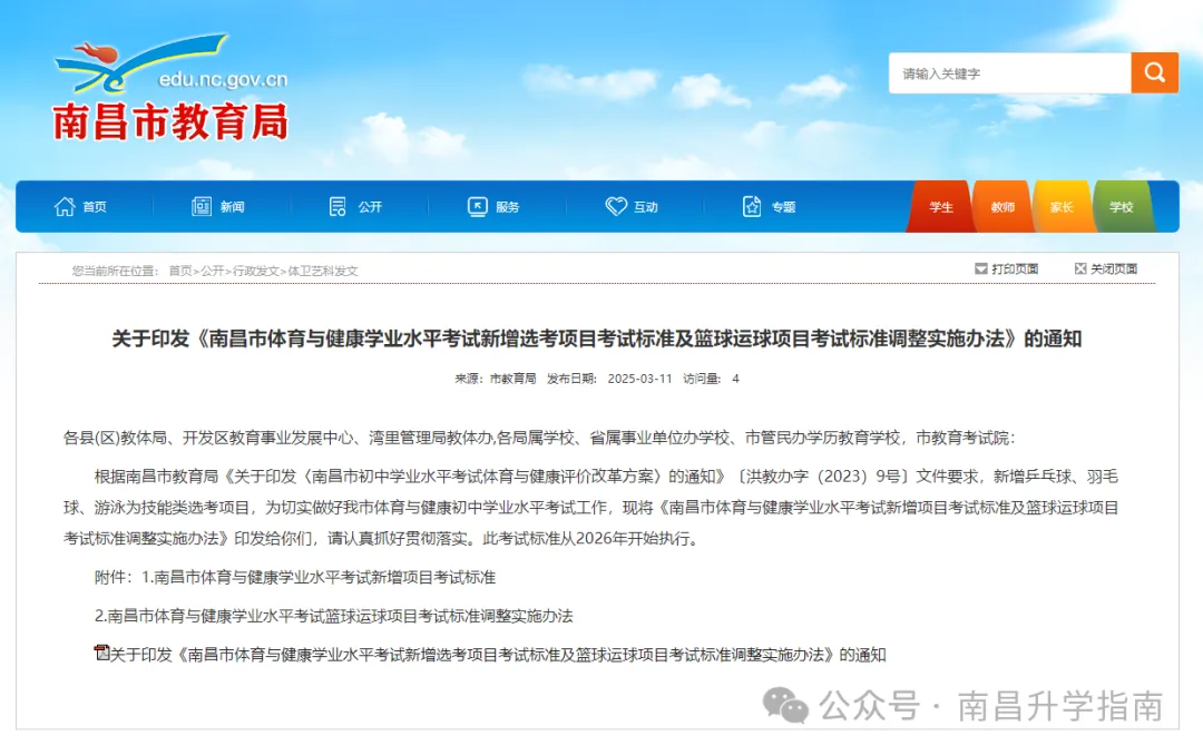 此前,南昌市教育局发布《南昌市初中学业水平考试体育与健康评价改革方案》,从2023年秋季入学的七年级学生(即2026届南昌中考生)中考体育评价方式将进行调整,具体调整如下: