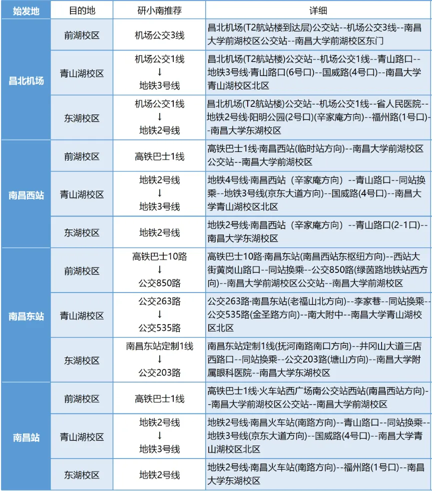 南昌大学前湖、青山湖、东湖三大校区地理位置分散,出行前务必确认复试校区!下面研小南给各位考生整理了一份从机场、各大火车站到各校区的专属路线,快码住~