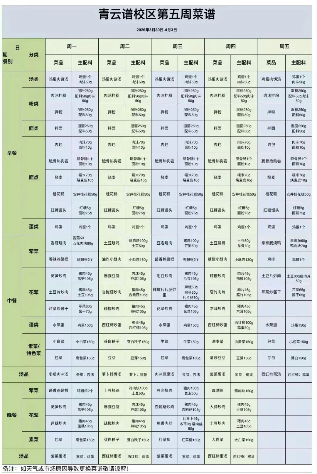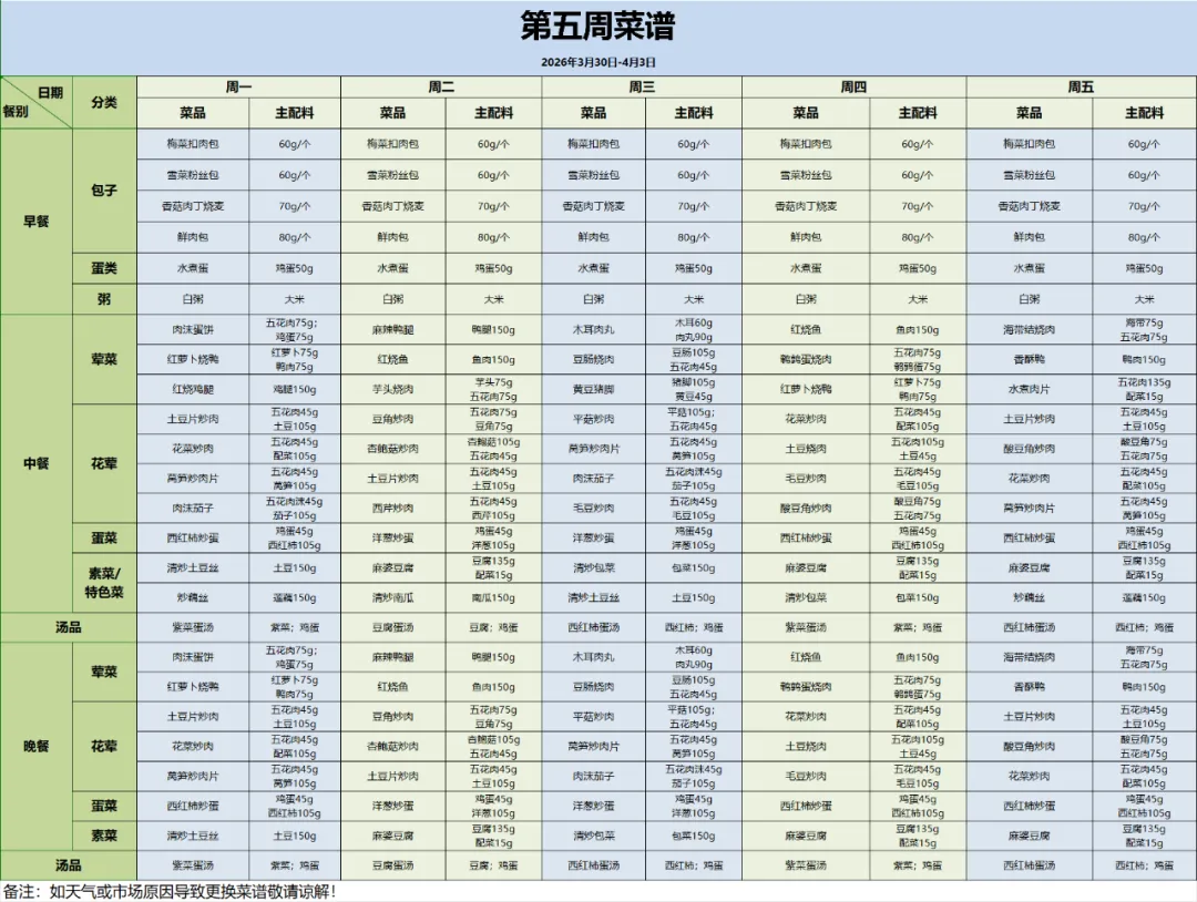 南昌市汽车机电学校第5周菜谱