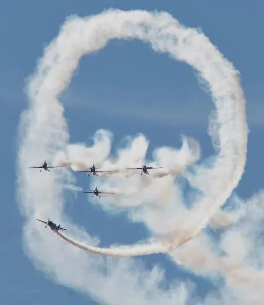 这支来自意大利的民间特技飞行队,驾驶四架涂有白蓝红三色的螺旋桨飞机(先锋330和先锋300)进行编队飞行表演。所有飞机都配备了白烟发生器,每个机翼上都装有特殊卡槽,放置彩烟、闪光弹和焰火。