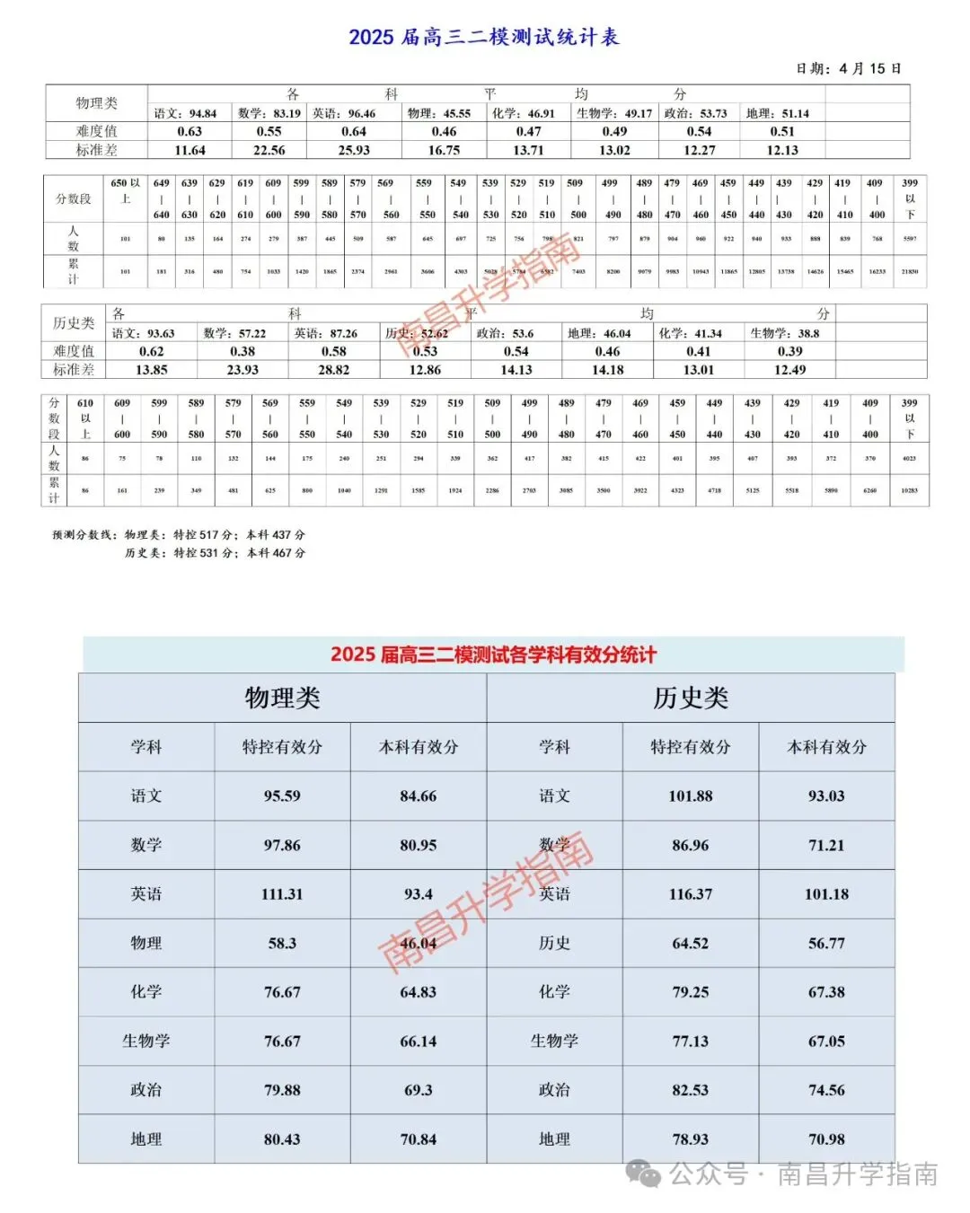 南昌市2025届高三二模统计表(点击看大图)