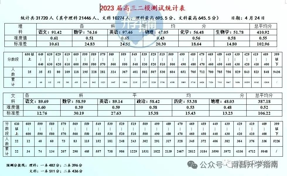 南昌市2023届高三二模统计表(点击看大图)