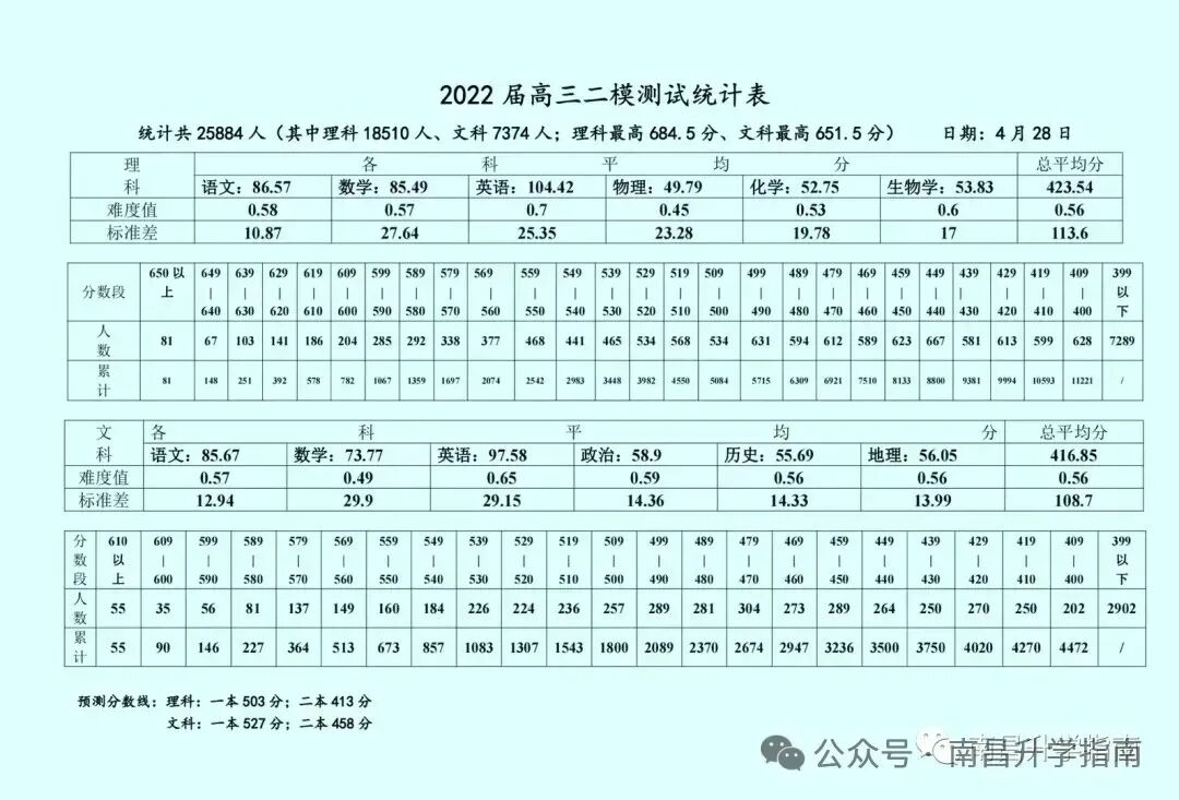 南昌市2022届高三二模统计表(点击看大图)