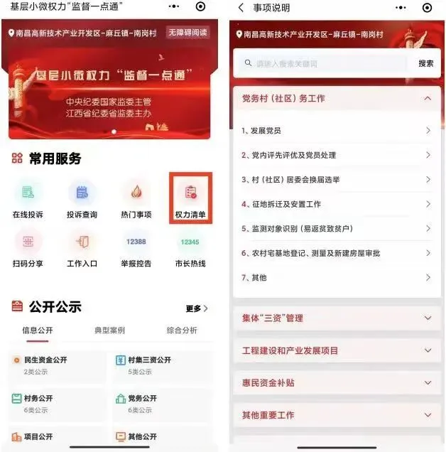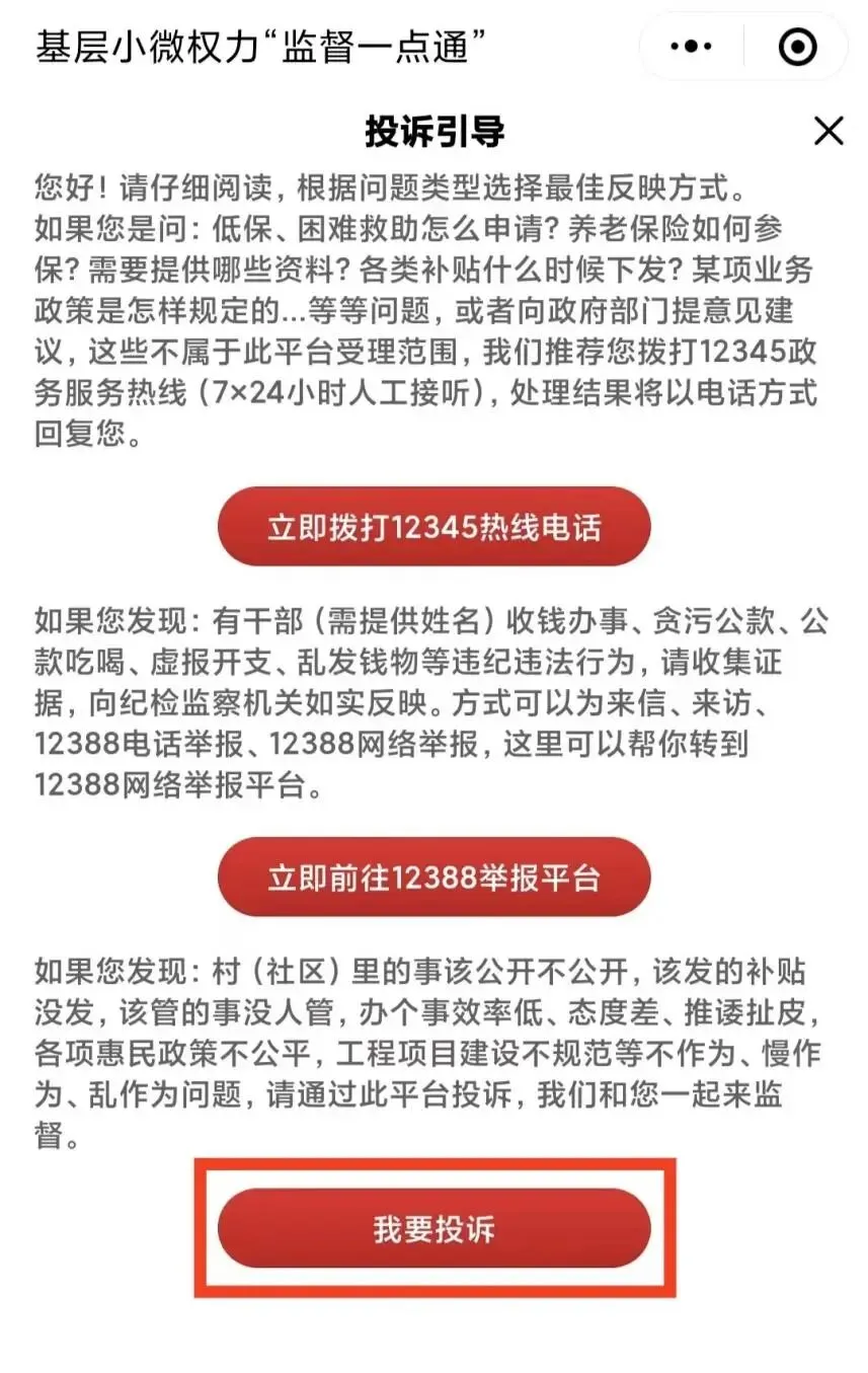 基层小微权力“监督一点通”平台,是由中央纪委国家监委统一建设的为解决群众诉求、引导群众参与监督的服务平台,专门负责监督基层小微权力运行,督促解决群众身边的操心事、烦心事、揪心事。群众可以上网查询基层的党务村务工作、集体“三资”管理、工程项目建设、民生资金发放等情况,也可以在线反映部门、干部办事作风问题。