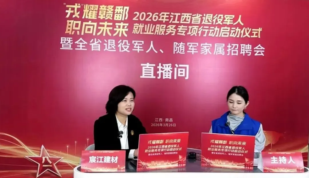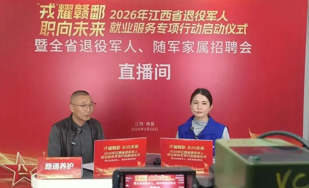3月26日,由江西省退役军人事务厅、省人力资源和社会保障厅主办的 “戎耀赣鄱 职向未来”2026年江西省退役军人就业服务专项行动在南昌正式启动。江西省退役军人事务厅就业创业处一级调研员李毓涛主持活动,省退役军人事务厅党组成员、副厅长王纯,省人力资源社会保障厅党组成员、副厅长叶志忠,南昌市人民政府党组成员、副市长陈鹏辉等领导出席并致辞。全省11个设区市同步举行招聘会主会场活动,为广大退役军人及随军家属搭建起广阔的就业创业平台。