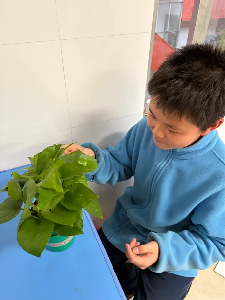 指尖轻触绿萝的叶片,感受叶脉里流动的生机。从3月9日到22日,我每天为它浇水、擦拭叶片上的尘埃,看着新叶从卷曲到舒展,听着它在课间与我们的读书声轻轻应和。这盆绿萝不仅装点了教室的角落,更让我懂得:耐心与陪伴,能让平凡的日子长出希望的模样。