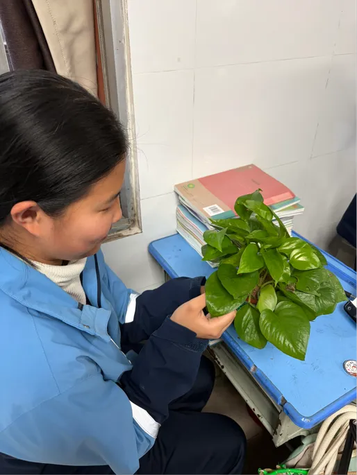 在这段与绿萝相伴的日子里,我们用指尖触碰生机,用耐心浇灌成长。每天的浇水、擦拭叶片,早已不是简单的照料,而是与一株生命的温柔对话。它在教室的角落舒展新叶,我们在书桌前伏案苦读,彼此见证着时光里的点滴进步。