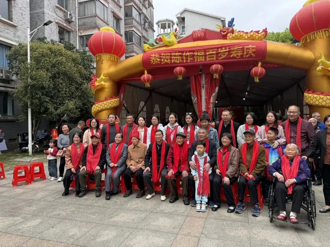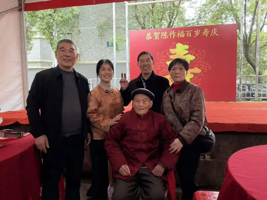 作为家中最小的女儿,陈荔回忆,小时候父母总会把好吃的留给自己,让她倍感家的温暖。如今因住得较远,她每周日都会早早过来照顾父亲,让哥哥姐姐也能稍作休息。对于今天的百岁宴,她说:“我发自内心地高兴,感激这么多亲朋好友和好邻居为父亲送来祝福。”
