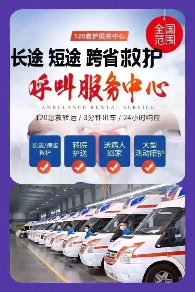 中福救护车出租转运公司,120救护车接送病人预约护送。24小时为术后康复、危重患者及跨区域就医人群提供专业医疗转运服务,提供120救护车出租‖救护车转运‖私人120救护车(非急救)‖跨省长途转运‖危重病人转运‖市内转运‖术后康复病人转运‖高铁病人转运‖患者返乡‖大型活动赛事保障‖配备ICU设备:呼吸机▪心电监护仪▪吸痰器•微量泵•氧气▪急救药箱▪专业医护团队