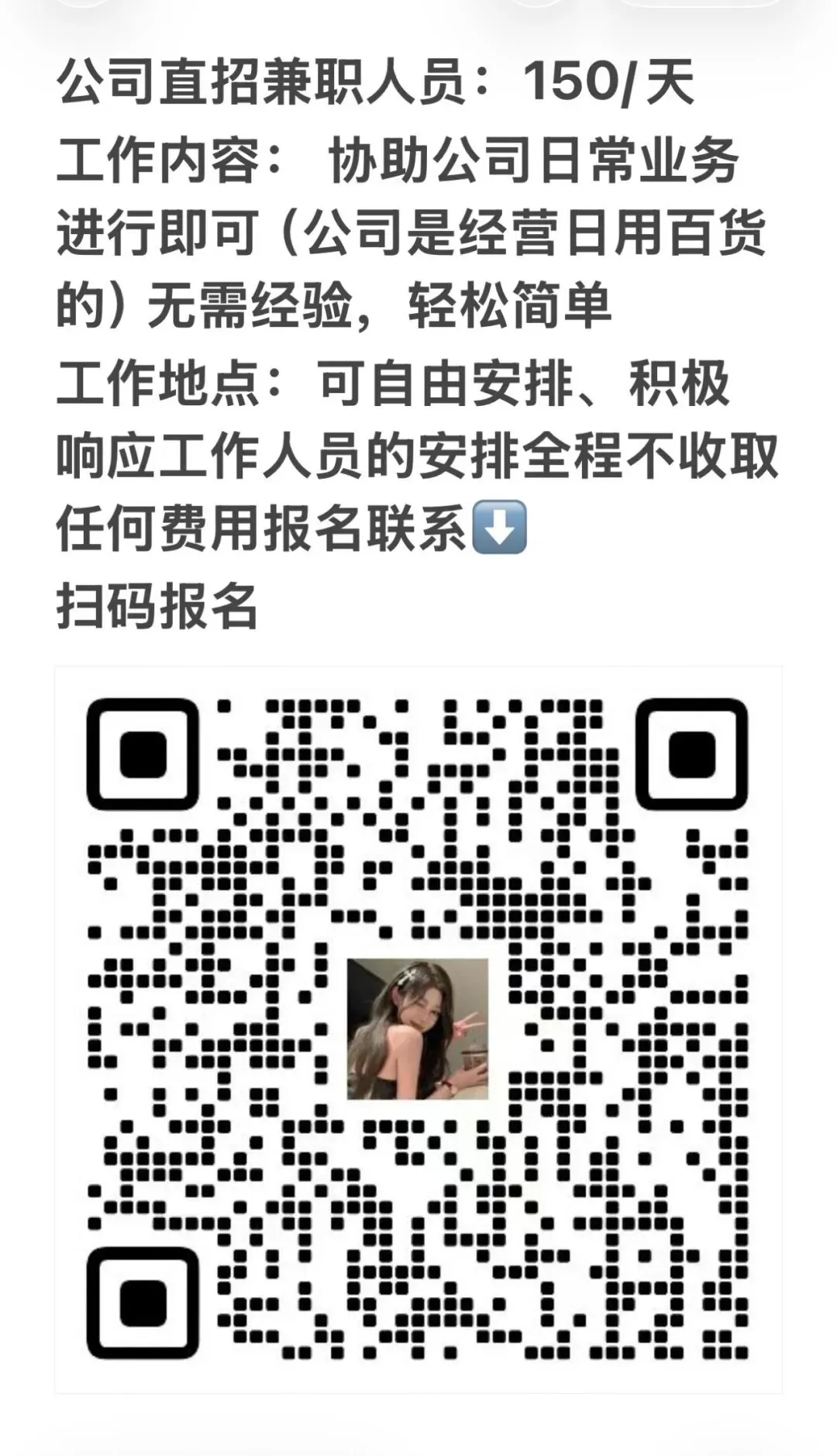 人人能做,挂vx日结80,长期稳定的来【详情】用你们的V信H扫码登录在公司客服的电脑上用于引流【备注】所有过程你们都能看到不涉及你的V信好友,不影响你正常使用【报名】扫码添加