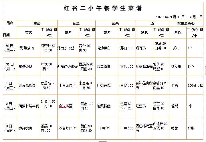 学生菜谱公示