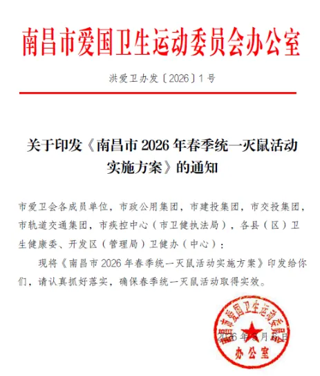 为了从源头上预防鼠传疾病,保障大家的身体健康,南昌市爱卫办已统一部署:3月27日(本周五)晚6点,全市启动春季统一灭鼠行动!