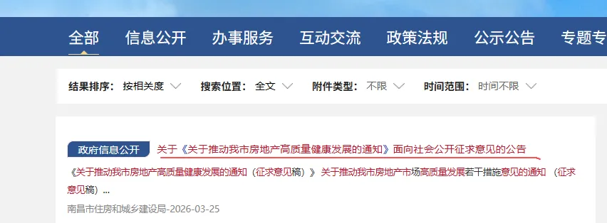 3月25日,南昌市住房和城乡建设局正式发布《关于推动我市房地产高质量健康发展的通知(征求意见稿)》。