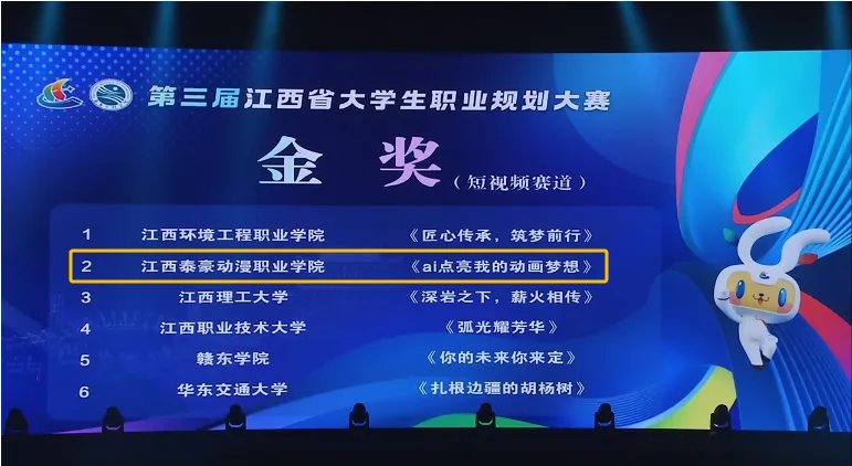 3月1日至2日,在江西省教育厅主办的第三届全省大学生职业规划大赛中,我校学子脱颖而出,实现赛事金、银、铜奖“大满贯”。其中,《ai点亮我的动画梦想》团队斩获短视频赛道金奖,印证了我校人才培养与市场需求的精准对接,为2025届毕业生高质量就业奠定坚实基础。