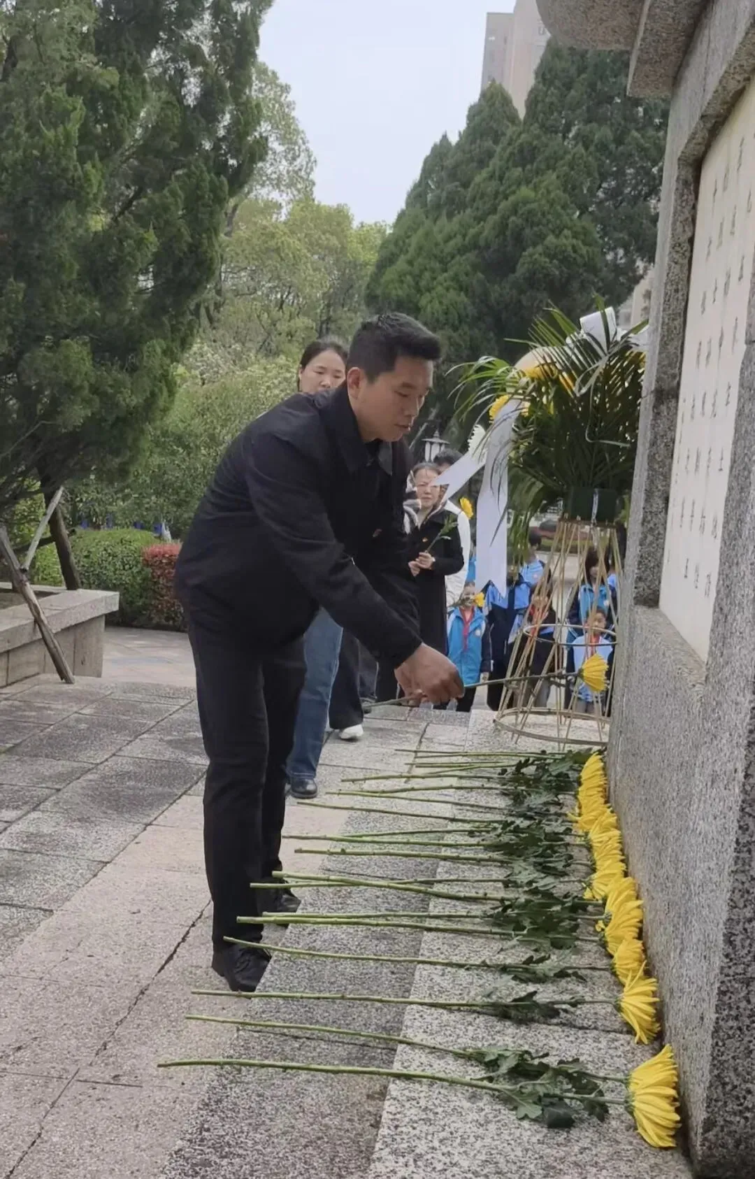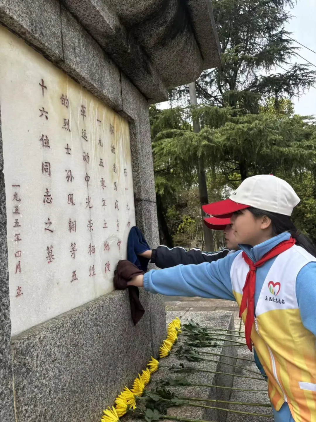 仪式结束后,师生代表们手持黄菊,有序绕行革命烈士纪念塔一周,近距离瞻仰纪念碑,细细擦拭碑身尘埃,在静默凝望中感受英烈精神的厚重力量,再次向革命先烈致以最崇高的敬意。