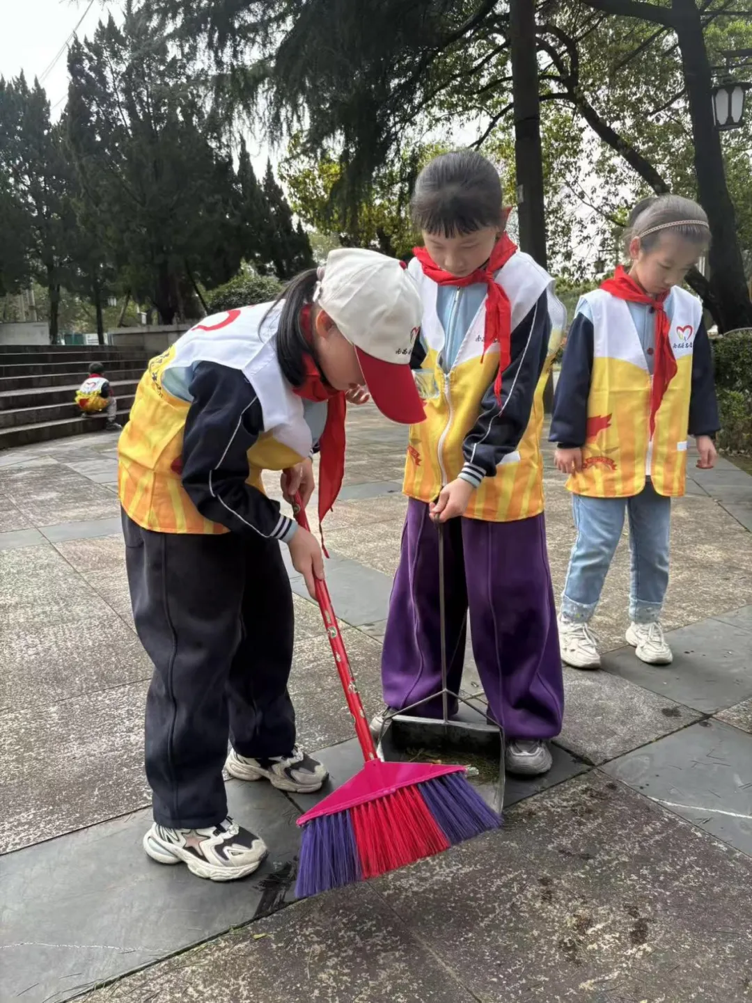 绕行瞻仰完毕,师生志愿者们即刻开展“守护英烈安息地”专项志愿服务。大家分工明确、配合默契,手持清洁工具,认真清扫纪念塔周边落叶杂物,细心擦拭碑体与周边设施,用双手呵护这片神圣的净土,以实际行动践行对英烈的承诺,把缅怀之情化作守护之举,让文明祭扫、尊崇英烈的风尚落到实处。
