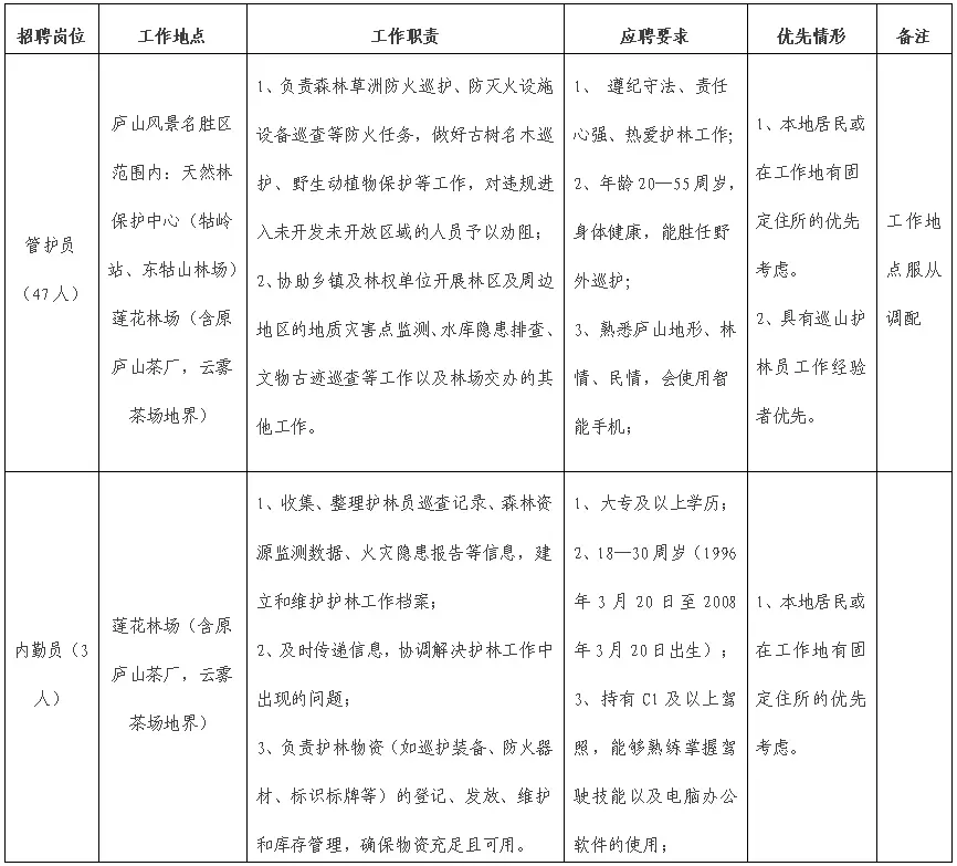 来源:庐山云雾茶产业集团2026年面向社会公开招聘旅游资源管护员公告