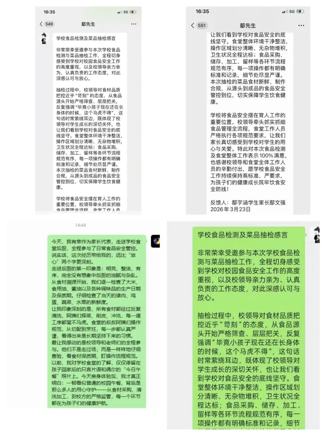 本周家长代表走进食堂陪餐,反馈内容客观全面,既有真诚的赞许,也有建设性意见。家长们普遍对我校食品安全管理和膳食服务表示认可,我们将认真吸纳建议,不断改进,用心守护学生每一餐。