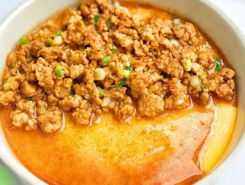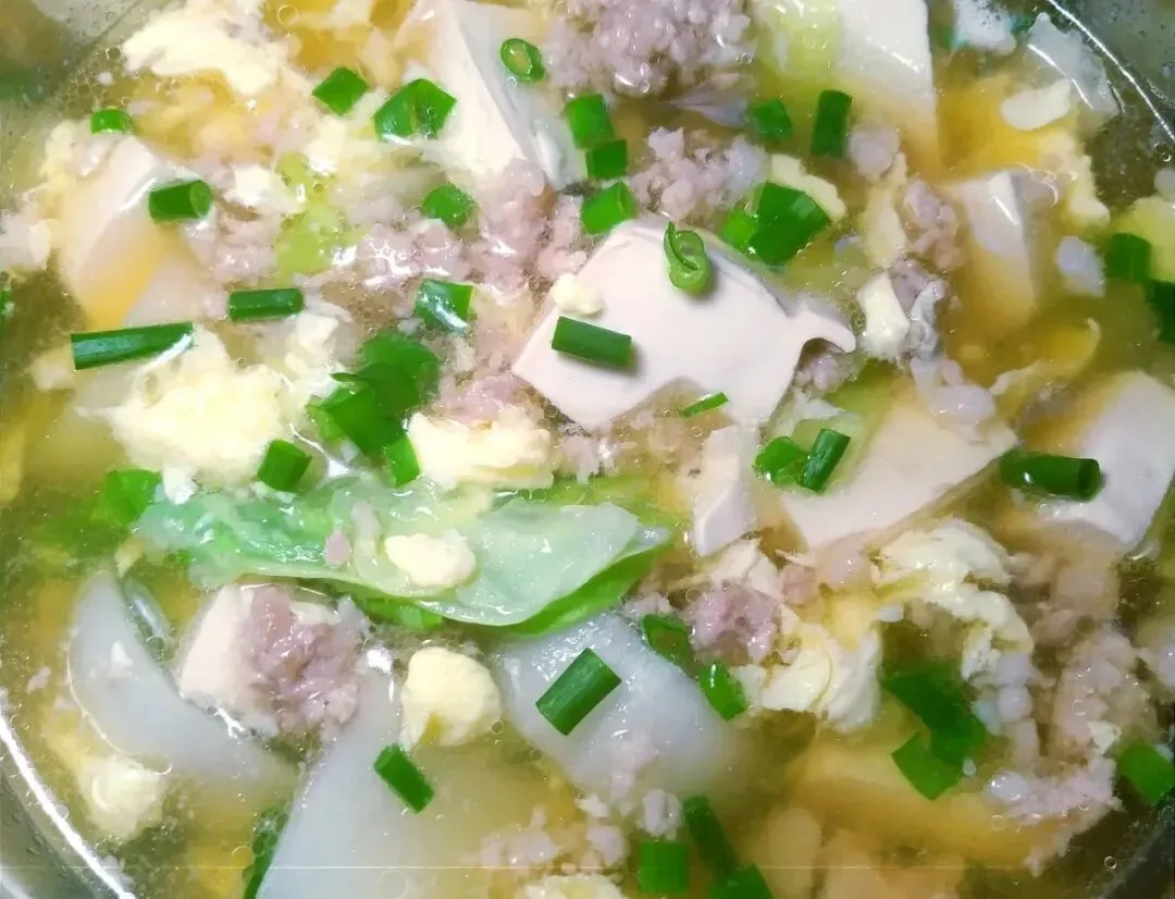 肉沫青菜豆腐蛋汤、香甜米饭