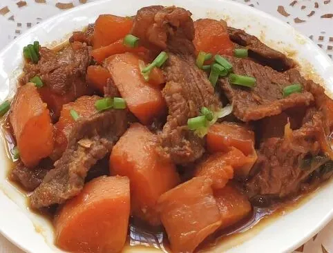 胡萝卜烧牛肉、韭菜炒蛋