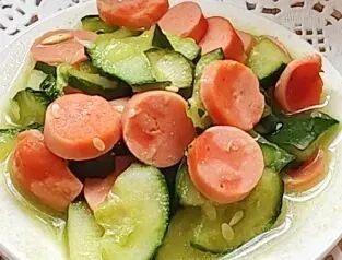 豆泡烧肉、青瓜炒火腿肠