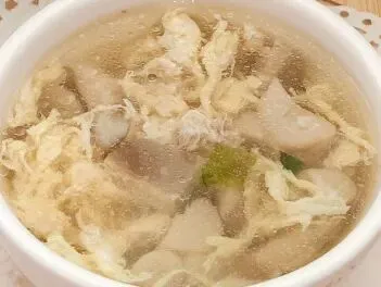 肉沫菌菇蛋汤、香甜米饭