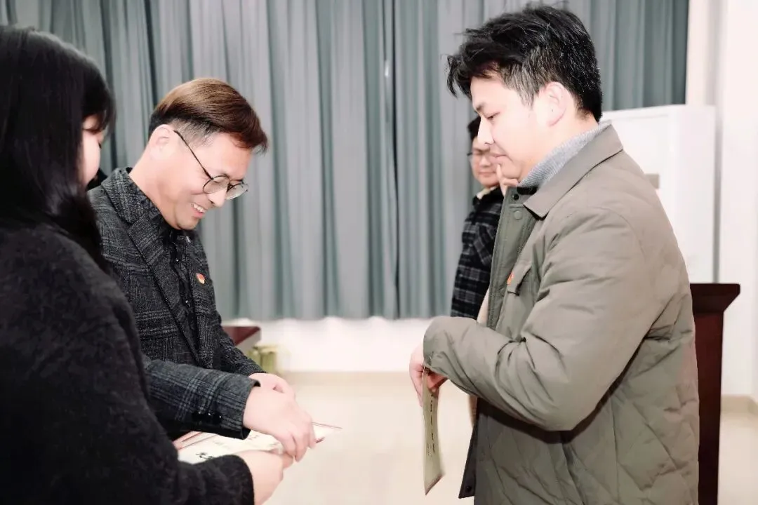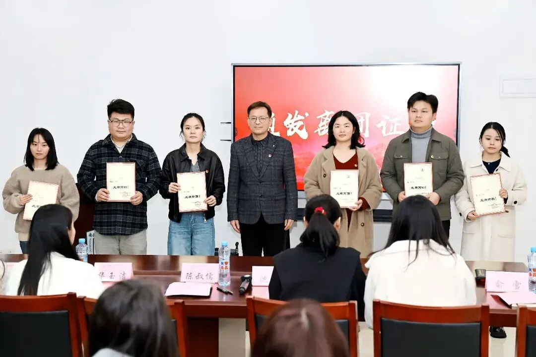 换届选举结束后,举行离团仪式。校团委负责人沈凤宣读超龄离团教师名单,肯定其团期间的贡献并送上祝福。校领导陈叔儒为离团教师颁发证书,传递组织温情。随后,陈叔儒副院长致辞,对新一届支委会和离团人员提出四点期望,鼓励大家坚守初心、勇担使命。