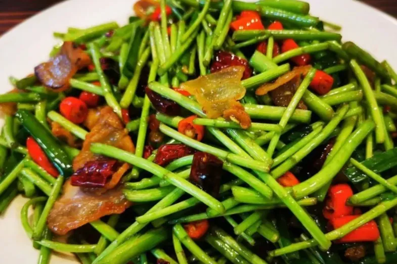 要是只推荐一道,我会选藜蒿炒腊肉。做法不复杂,先把腊肉煸出油,再下藜蒿快炒,火要急,时间要短。这样腊肉的咸香能挂在藜蒿上,藜蒿自己那点清气又不会丢。吃起来不是谁压过谁,而是刚好顶住彼此。