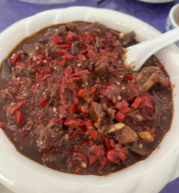 说一道血鸭的做法。新鲜鸭肉先炒出油香,再下姜蒜辣椒翻匀,等肉收紧后,把调好的鸭血淋进去,让它顺着锅气裹在肉上。火候不能急,急了会老,慢一点,香味才会沉下来。